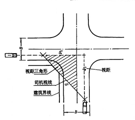 兩條道路以銳角或鈍角斜交;當相交銳角較小時,形成狹長形交叉口,不利于交通組織(特別是左轉(zhuǎn)交通),街角建筑難以處理,應盡量避免這種形式。當斜交不可避免時其交角應>45度。為保證城市交通暢通,場地內(nèi)道路與城市道路相接時其交角不宜小于75度。