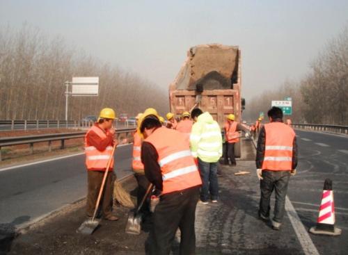 路面表面層產(chǎn)生坑槽原因:由于瀝青路面上面層混合料局部空隙率較大、瀝青與石料間的粘附力不強(qiáng),路表水(雨水或雪水)進(jìn)入并滯留在表面層瀝青混合料中,在行車荷載尤其是重載車輛的不斷作用下,產(chǎn)生的動(dòng)水壓力使表面層的瀝青從石料表面剝落下來,瀝青路面便會(huì)出現(xiàn)局部松散破損。散落的石料被車輪甩出,路面自上而下逐漸會(huì)形成坑槽。