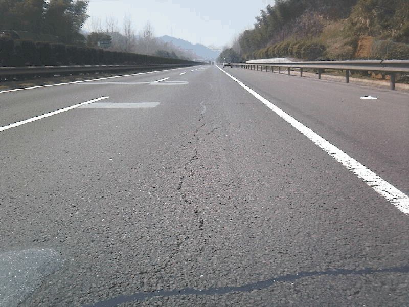 一種主要發(fā)生在緊急停車帶或路肩部位,其形狀是沿路肩邊緣向內(nèi)逐步擴(kuò)大,呈月牙形,這種裂縫容易使路基發(fā)生滑移,危險(xiǎn)性很大;