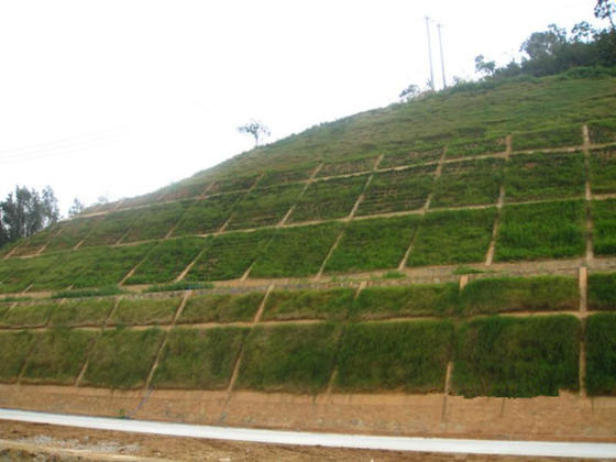 經過采用極限平衡法、數(shù)值分析方法對邊坡穩(wěn)定性進行分析計算,得出保證高邊坡穩(wěn)定所需要的錨固力。通過在坡體內施工預應力錨索、打入一定數(shù)量的系統(tǒng)錨桿(土釘)或注漿加固對邊坡進行處治。系統(tǒng)預應力錨索為主動受力,單根錨索設計錨固力可高達3000KN,是高邊坡深層加固防護的主要措施。系統(tǒng)錨桿(土釘)對邊坡防護的機理相當于螺栓的作用,是一種對邊坡進行中淺層加固的手段。根據(jù)滑動面的埋深確定邊坡不穩(wěn)定塊體大小及所需錨固力,一般多用預應力錨(索)桿有針對性的進行加固防護。為防治邊坡表面風化、沖蝕或弱化,主要采取植物防護、砌體封閉防護、噴射(網噴)混凝土等作為坡面防護措施。