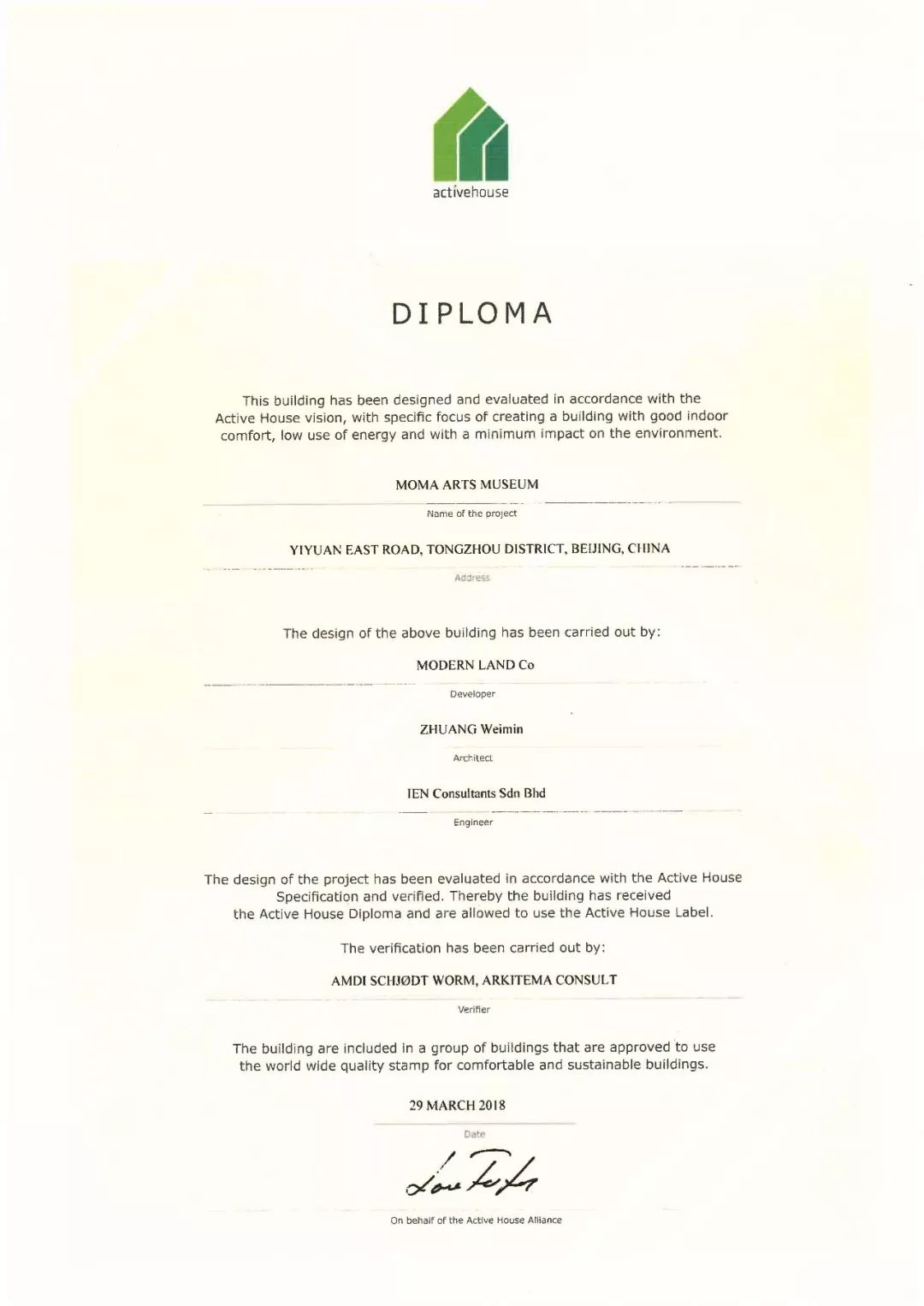 清華大學建筑設計研究院設計項目——當代建筑藝術博物館成為中國獲得主動式建筑ACTIVE HOUSE國際聯(lián)盟認證的第一棟博物館建筑。同時這也是清華大學建筑設計研究院第一個獲得主動式建筑認證的設計項目。(AH于今年開始中國項目的國際認證評估,目前中國獲得AH國際認證的建筑只有當代建筑藝術博物館和威盧克斯辦公樓)。