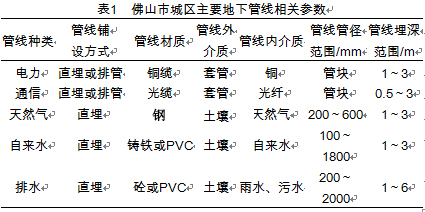 當今,城市的地下埋藏著無數的地下管線,是城市運轉的命脈組成部分而且隨著城市的不斷發展,其埋設環境的復雜度日益提升,導致地下管線探測難度的直線上升。以佛山市中心城區為例,其各條主干道均鋪設有電力、通信、天然氣、自來水、排水等各類生活配套管線。隨著市區房地產項目的開發,道路上鋪設的管線數量越來越多、管線的管徑越來越大、管線的走向也越來越復雜,對城市管線探測提出了更高的要求,特別是近年來非金屬材質管線的鋪設為管線探測帶來了新的難題,見表1。