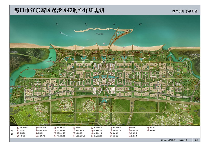 2018年9月3日,正式發布江東新區起步區城市設計方案國際征集公告,從68家機構中比選出6家正式參與起步區城市設計方案編制工作。2019年1月10日,《中國(海南)自由貿易區海口江東新區起步區城市設計方案國際征集》評審,由李曉江、吳志強、崔愷、程泰寧、王建國、楊保軍、汪孝安、楊晴、薛桂澄9位專家組成的評審專家組對6個應征設計方案進行了評審,評選出一個優秀方案和兩個優良設計方案。