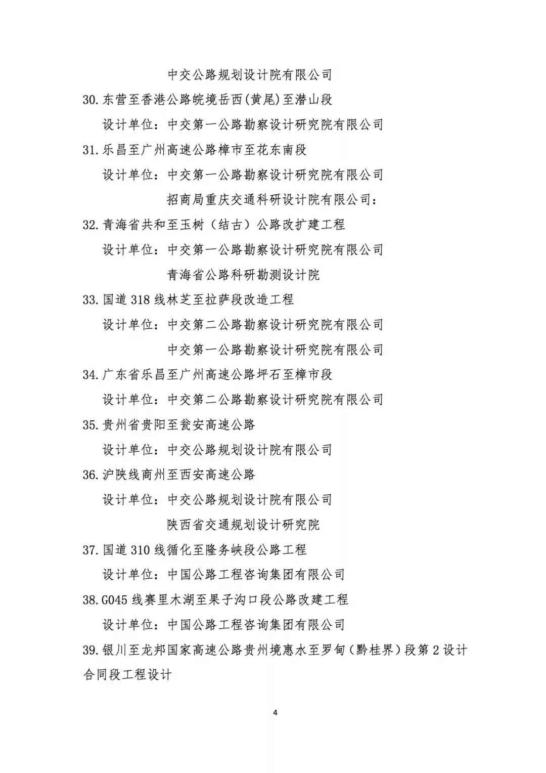 本次獲獎的62個項目中,公路工程39項,橋梁工程16項,隧道工程7項。其中中交公路規劃設計院有限公司參與的14個項目獲獎。
