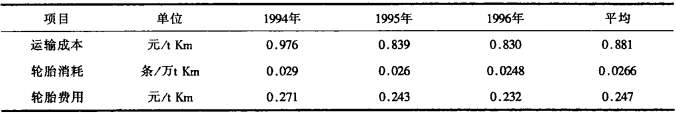 表 3 歷年電動輪汽車運輸成本和輪胎消耗 |