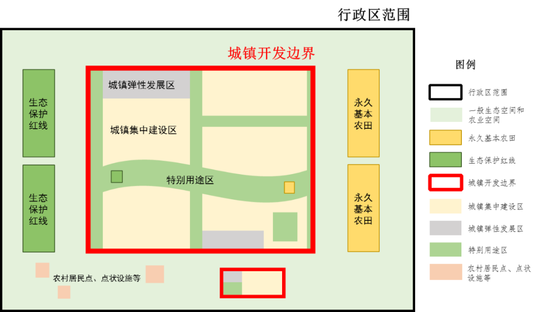 市級總規應依照上位國土空間規劃確定的城鎮定位、規模指標等控制性要求,結合地方發展實際,劃定市轄區城鎮開發邊界;統籌提出縣人民政府所在地鎮(街道)、各類開發區的城鎮開發邊界指導方案??h級總規應依據市級總規的指導方案,劃定縣域范圍內的城鎮開發邊界,包括縣人民政府所在地鎮(街道)、其他建制鎮、各類開發區等。