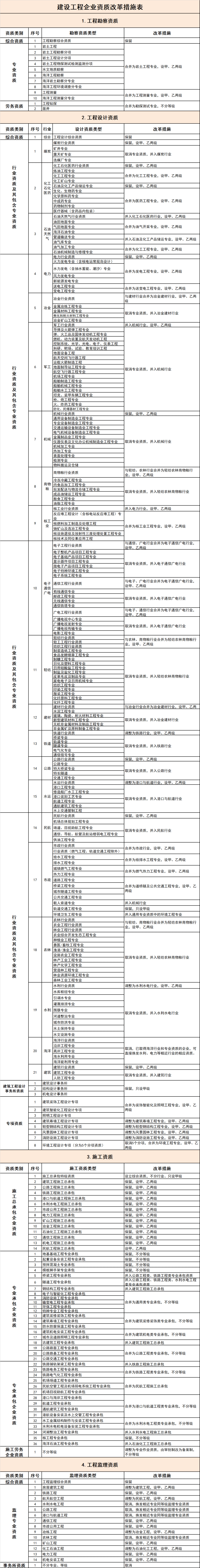 1、 建設工程企業資質改革措施表