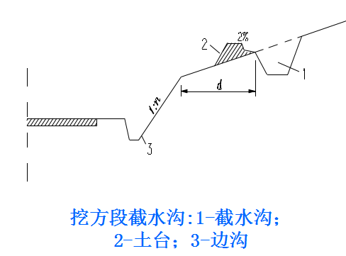 ③截水溝水流不應(yīng)引入邊溝,當(dāng)必須引入時(shí),應(yīng)增大邊溝橫斷面,并進(jìn)行保護(hù);