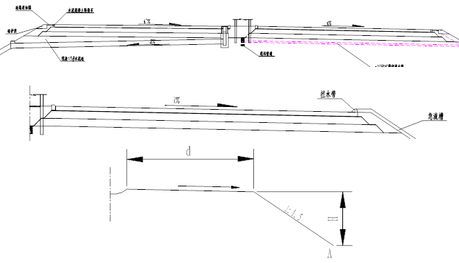 倒虹吸的設(shè)置往往是因路基橫跨原有溝渠,且溝渠水位高于路基設(shè)計(jì)標(biāo)高,不能按正常條件下設(shè)置涵洞,此時(shí)采用倒虹吸是可行的方案之一。 渡水槽的設(shè)置是因原水道與路基設(shè)計(jì)標(biāo)高相差較大,如果路基兩側(cè)地形有利,或當(dāng)?shù)卮_有必要,可設(shè)簡(jiǎn)易橋梁,架設(shè)水槽或管道,從路基上部跨越,以勾通路基兩側(cè)的水流。