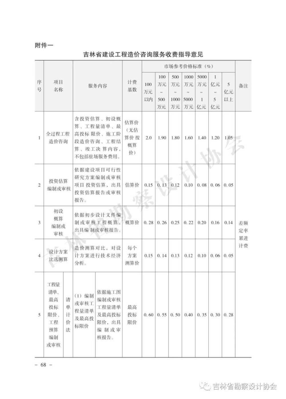 為進一步維護公平有序的市場環境,引導勘察設計市場健康發展,近日,吉林省工程勘察設計行業協會發布地方工程勘察設計收費導則,對工程勘察、建筑工程、全過程工程咨詢、市政工程設計收費進行規定。