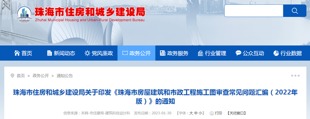 為提高我市施工圖設(shè)計及審查質(zhì)量,我局組織編制了《珠海市房屋建筑和市政工程施工圖審查常見問題匯編(2022年版)》,現(xiàn)予以印發(fā)。