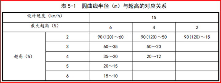 《規(guī)范》表5-1 圓曲線半徑(m)與超高的對應(yīng)關(guān)系