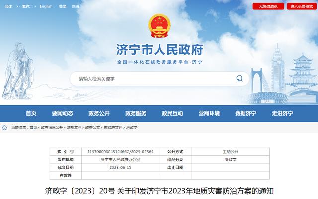 山東省濟(jì)寧市2023年地質(zhì)災(zāi)害防治方案公布
