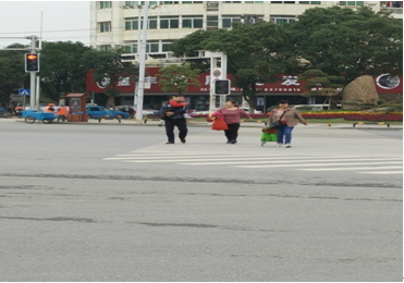 (三)機動車與非機動車、行人混行,爭搶路權沖突嚴重,存在交通安全隱患,如圖-3所示。