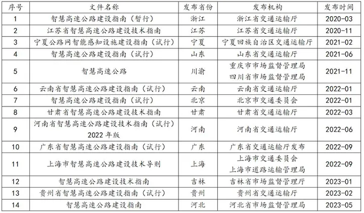 發(fā)展智慧交通是實(shí)現(xiàn)交通強(qiáng)國戰(zhàn)略的重要抓手,智慧公路是智慧交通的重要領(lǐng)域。為加強(qiáng)智慧交通規(guī)劃頂層設(shè)計,推進(jìn)智慧高速高質(zhì)量發(fā)展,最近幾年,各省紛紛開展智慧公路建設(shè)(技術(shù))指南的編制工作。