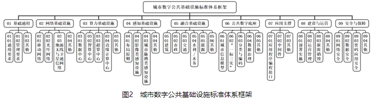 城市數字公共基礎設施標準體系框架描述了標準體系的基本組成單元,包括基礎通用、網絡基礎設施、算力基礎設施、感知基礎設施、融合基礎設施、公共數字底座、應用支撐、建設與運營、安全與保障等九類標準規范,如圖2所示。