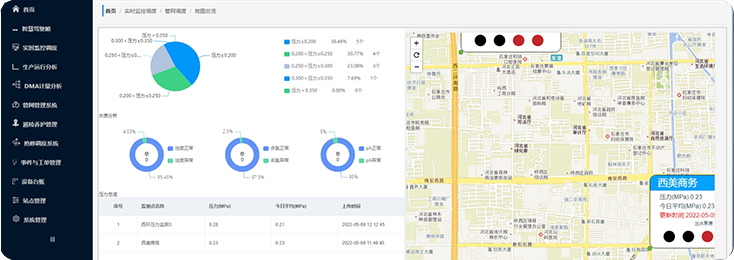 利用DMA分區方式,對劃定區域的水量輸入輸出情況進行監控。結合生產運行情況,分析得出該區域的產銷差數據。從而有針對性地降低漏損率,提高整體經營水平。 可自主進行DMA分區設置。只要選定的區域有相對獨立的輸入與輸出,即可劃定為DMA分析區域。DMA分區可以是某個社區,也可以是一定區域的管網。 將區域內的計量設備進行輸入輸出綁定后,即可對該區域進行計量分析監控。分析得出該區域的產銷差數據。從而有針對性地判斷該區域運營情況,降低漏失率。